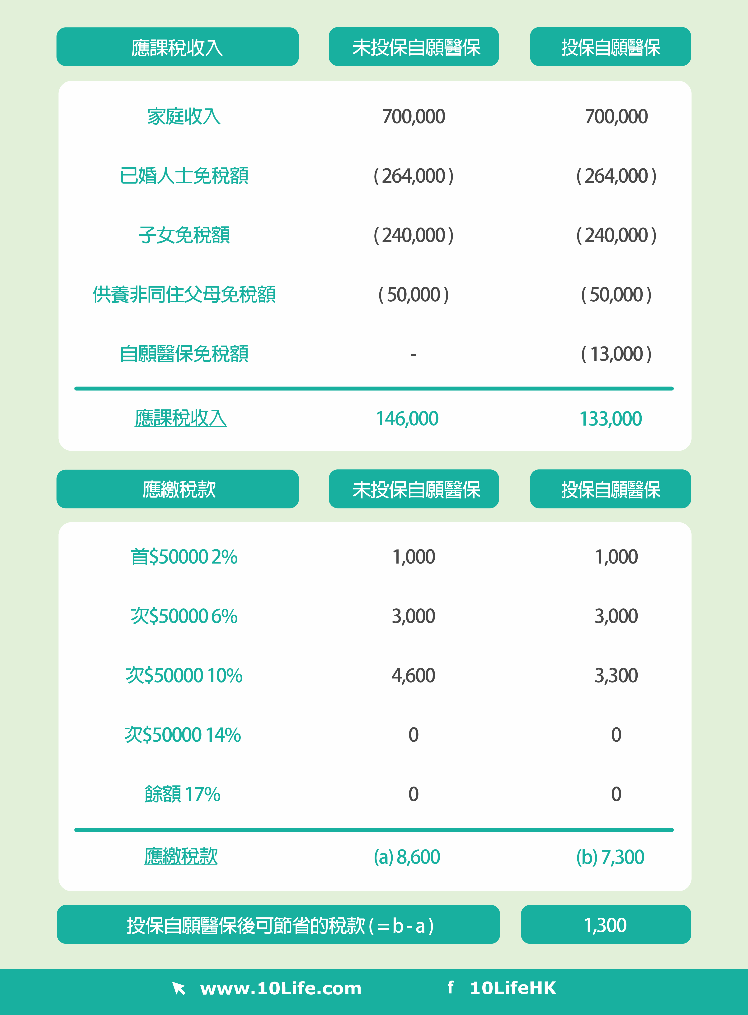 稅務優惠的實際金額,取決於保單持有人的入息水平及保費。例如,以最高稅階的17%稅率繳付稅款的高收入人士而言,如購買價值8,000港元的自願醫保保單,每年可享有最高 1,360 港元的稅務優惠。然而,對於只須按2%稅率繳付稅款的低收入人士,購買價值2,000港元的自願醫保保單,所得的稅務扣減 金額可能只有40港元。
