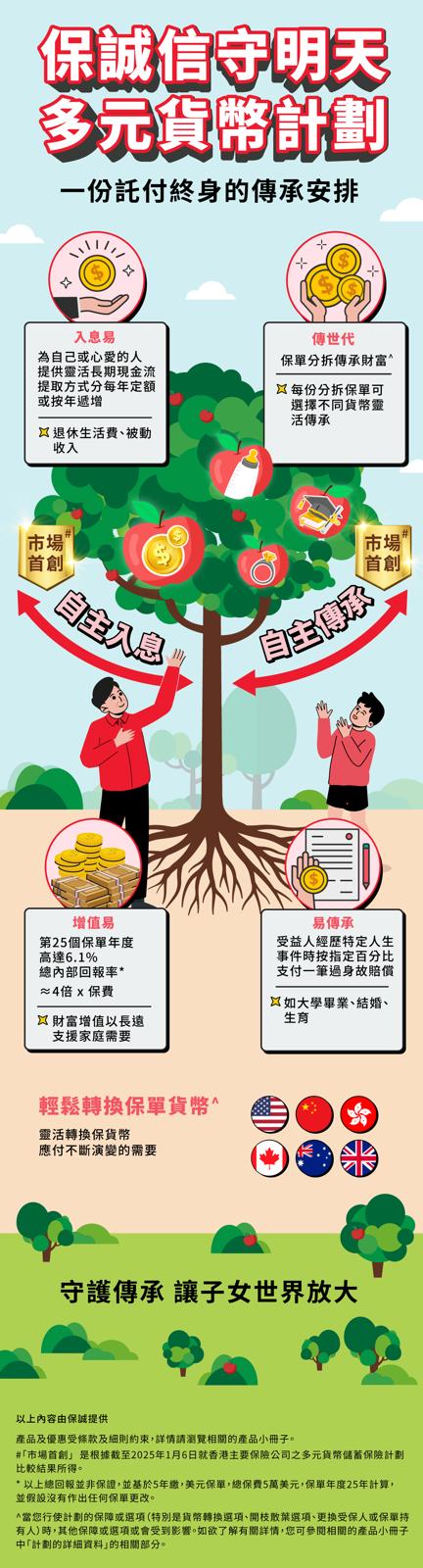1 保誠信守明天多元貨幣計畫由保誠保險有限公司(保誠)承保。產品及優惠受條款及細則約束,詳情請瀏覽https://pruhk.co/10life-entrust-product-page內相關的產品小冊子。